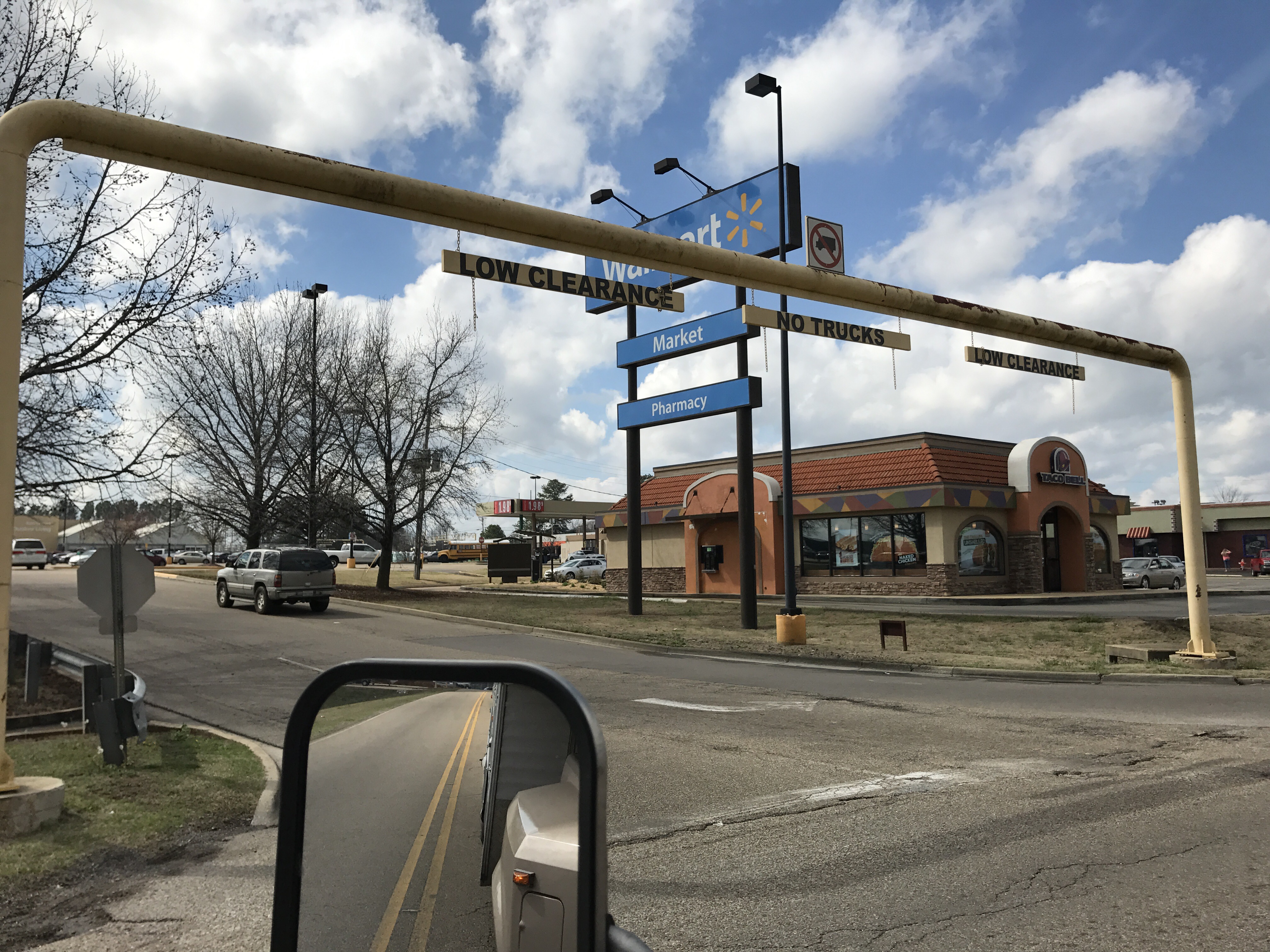 We were back on the road after breakfast and stopped to prepare bagged lunches in a Lowe’s parking lot in New Albany, MS. We tried to go to the Wal-Mart just up the street, but I could not even pull into their parking lot. There were large metal barricades across all the entrances prohibiting vehicles taller than 10 feet tall from entering. Since the RV is 12’ 9” tall, I guess this Wal-Mart does not want our business. I have seen Wal-Marts that prohibit overnight parking, but none to date that prohibit large vehicles from coming to shop.