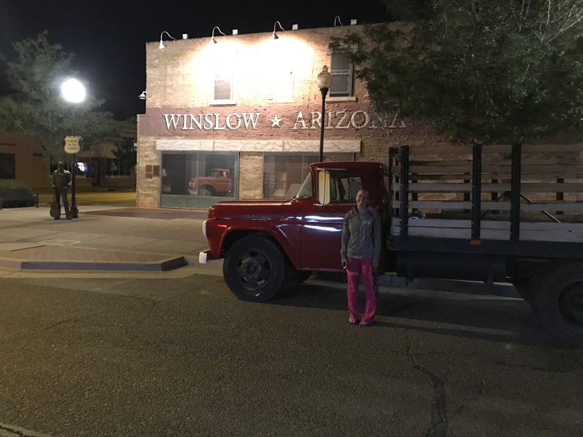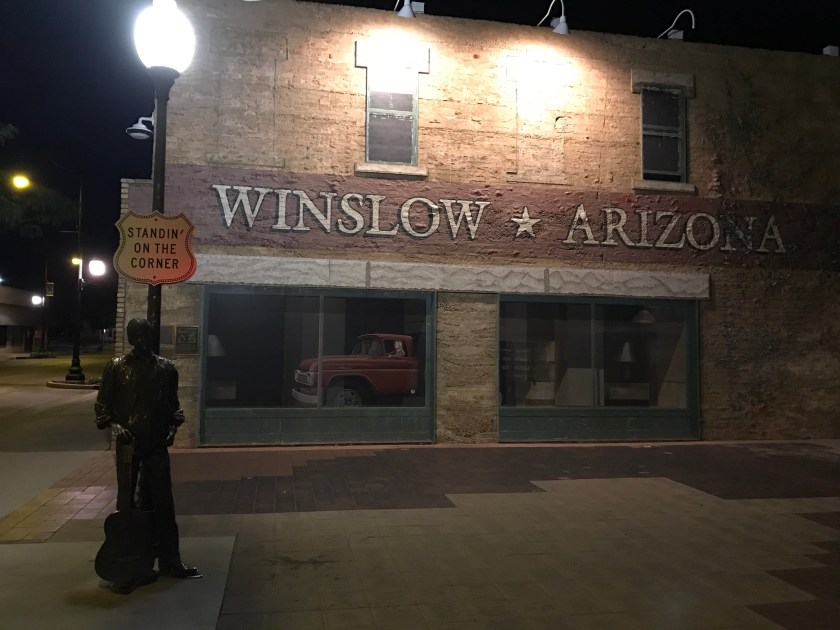 “Well, I’m a standing on a corner in Winslow, Arizona and such a fine sight to see. It’s a girl, my Lord, in a flatbed Ford slowin’ down to take a look at me”
