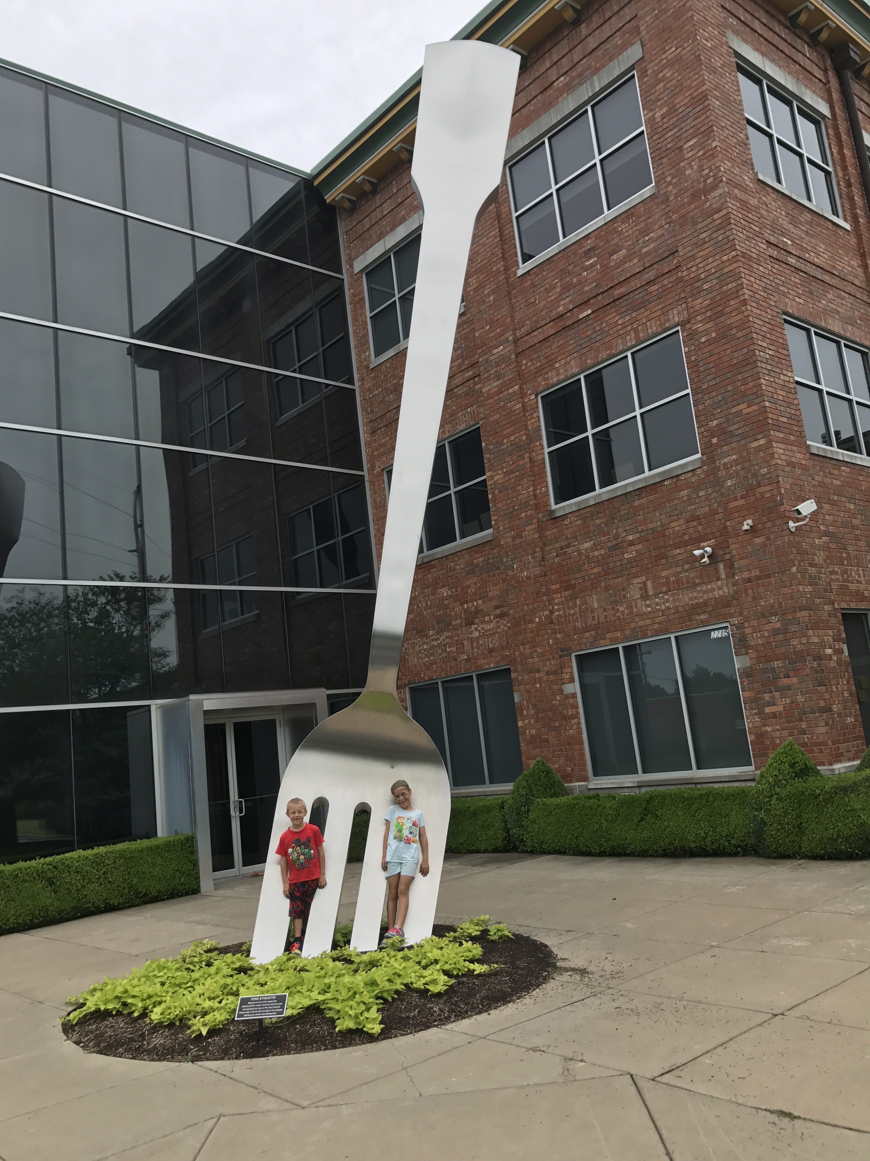 Today was our first day really exploring Springfield, other than figuring out where the closest Wal-Mart Supercenter is located. We visited the local farmer’s market as well as here, the “World’s Largest Fork”. It stands 35 feet tall and is made of polished stainless steel. It can be found in front of The Food Channel headquarters, which is apparently different than the Food Network.