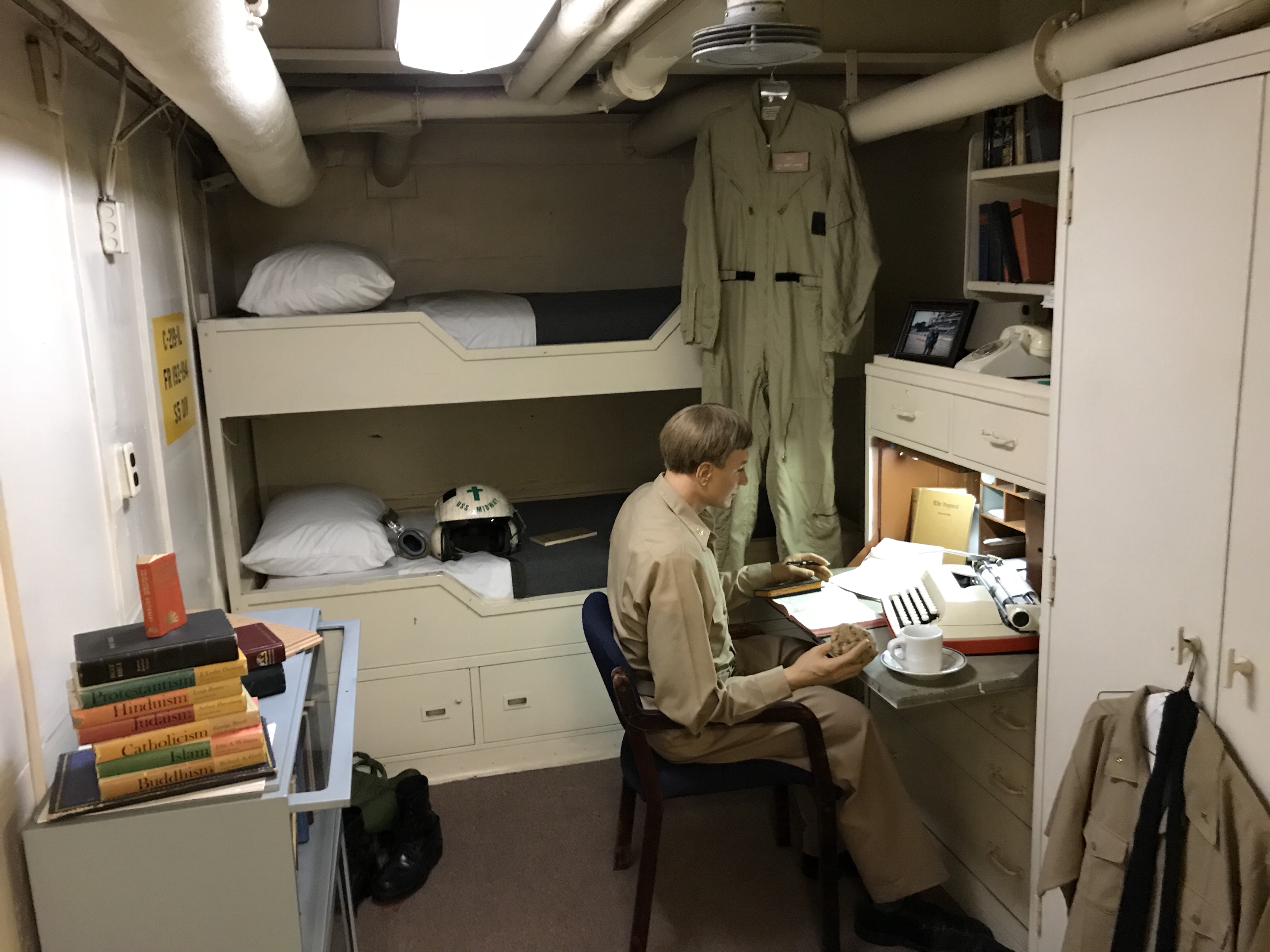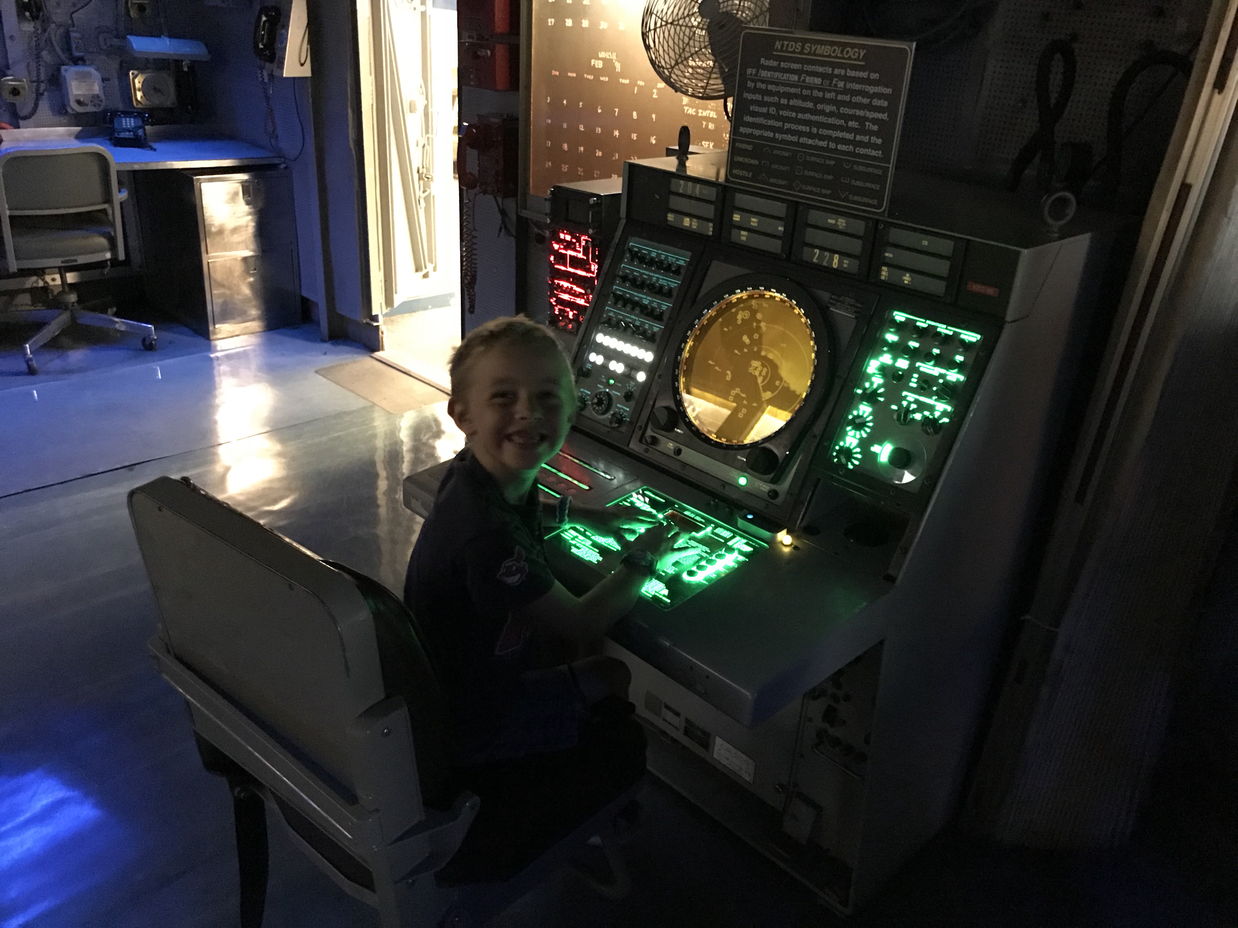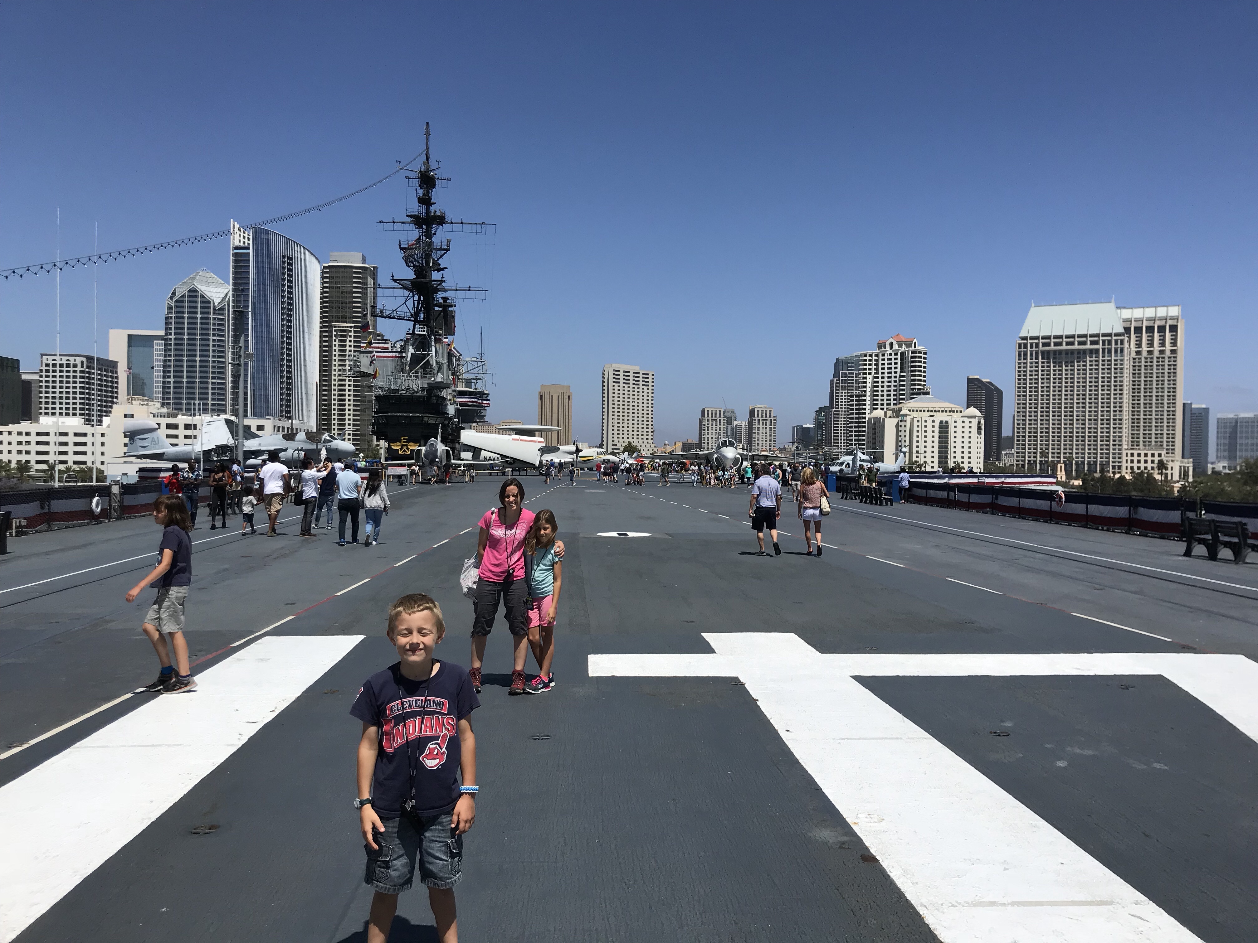 One of the most highly ranked attractions around San Diego, the USS Midway, also known as CVN-41, is one of the first slant-deck aircraft carriers in the US Navy. Since its decommissioning in 1992 it has been moored in the San Diego Bay. The ship offers daily tours to the public which are sure to give the visitor a glimpse into the life aboard an aircraft carrier. This floating city was home to around 4,500 personnel while underway. While we were not rushing through it, it still took us around 3.5 hours to complete the majority of the tour. We opted not to stand in line for the superstructure tour because Miss Kicky Feet is not tall enough to attend that portion of the tour, and there was a line waiting to get in that portion of the ship. The tour led us through the hanger deck, flight deck, mess deck, berthing spaces, engineering, laundry, portions of Officer Country, and the brig just to name a few. There were mannequins positioned around some of the spaces acting as crew members, and one moving & talking mannequin who explained part of the Midway story. The tour is self-paced and self-guided, however there is a free audio tour that is initiated in the different areas of the ship by tapping the loaned audio device on pads located around the ship. This method allows the visitor to visit compartments of the ship in any order they wish without disrupting the audio tour play list.