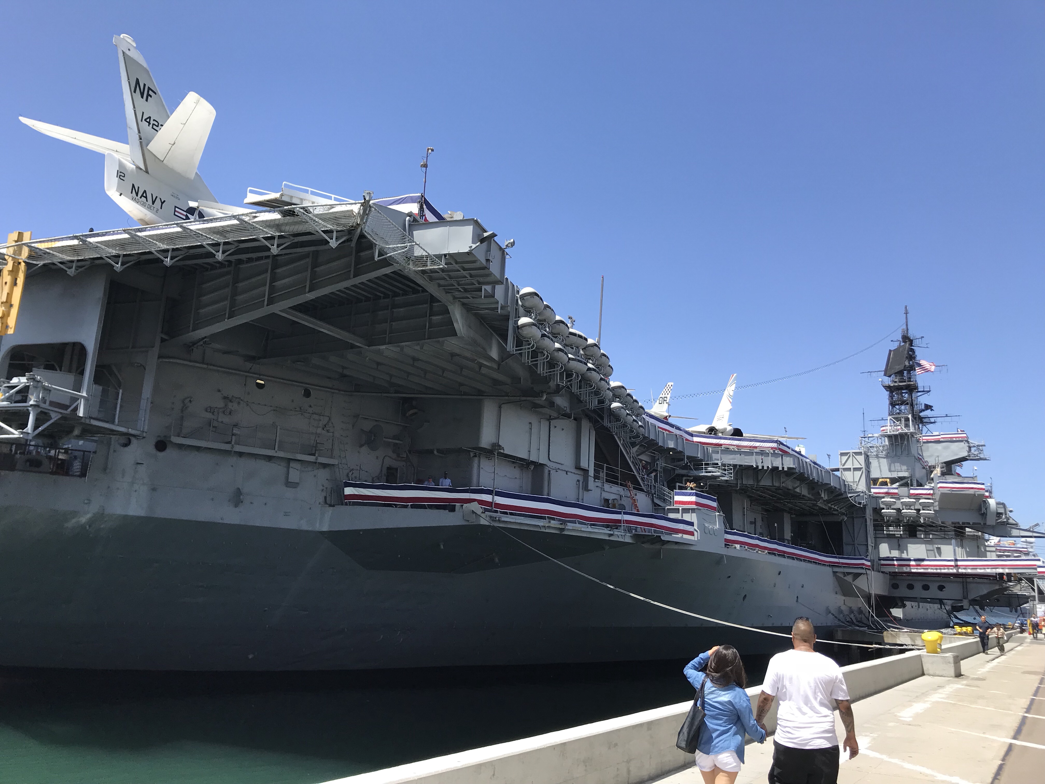 One of the most highly ranked attractions around San Diego, the USS Midway, also known as CVN-41, is one of the first slant-deck aircraft carriers in the US Navy. Since its decommissioning in 1992 it has been moored in the San Diego Bay. The ship offers daily tours to the public which are sure to give the visitor a glimpse into the life aboard an aircraft carrier. This floating city was home to around 4,500 personnel while underway. While we were not rushing through it, it still took us around 3.5 hours to complete the majority of the tour. We opted not to stand in line for the superstructure tour because Miss Kicky Feet is not tall enough to attend that portion of the tour, and there was a line waiting to get in that portion of the ship. The tour led us through the hanger deck, flight deck, mess deck, berthing spaces, engineering, laundry, portions of Officer Country, and the brig just to name a few. There were mannequins positioned around some of the spaces acting as crew members, and one moving & talking mannequin who explained part of the Midway story. The tour is self-paced and self-guided, however there is a free audio tour that is initiated in the different areas of the ship by tapping the loaned audio device on pads located around the ship. This method allows the visitor to visit compartments of the ship in any order they wish without disrupting the audio tour play list.