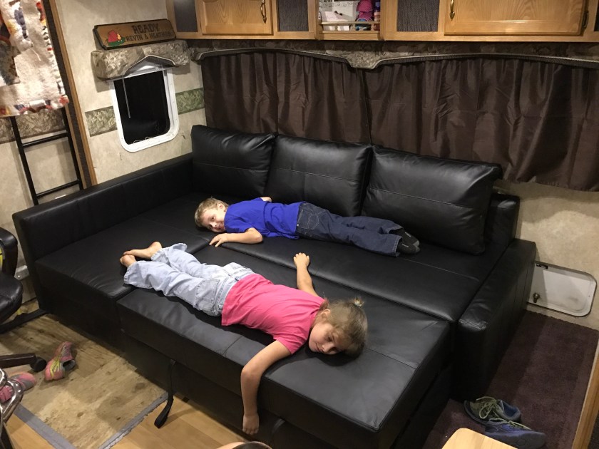 In return for inviting ourselves to my sister’s house all the time we were more than happy to host a birthday party for my nephew and a sleep-over at the RV including cookout, swimming in the campground pool, and a movie night for the kids.