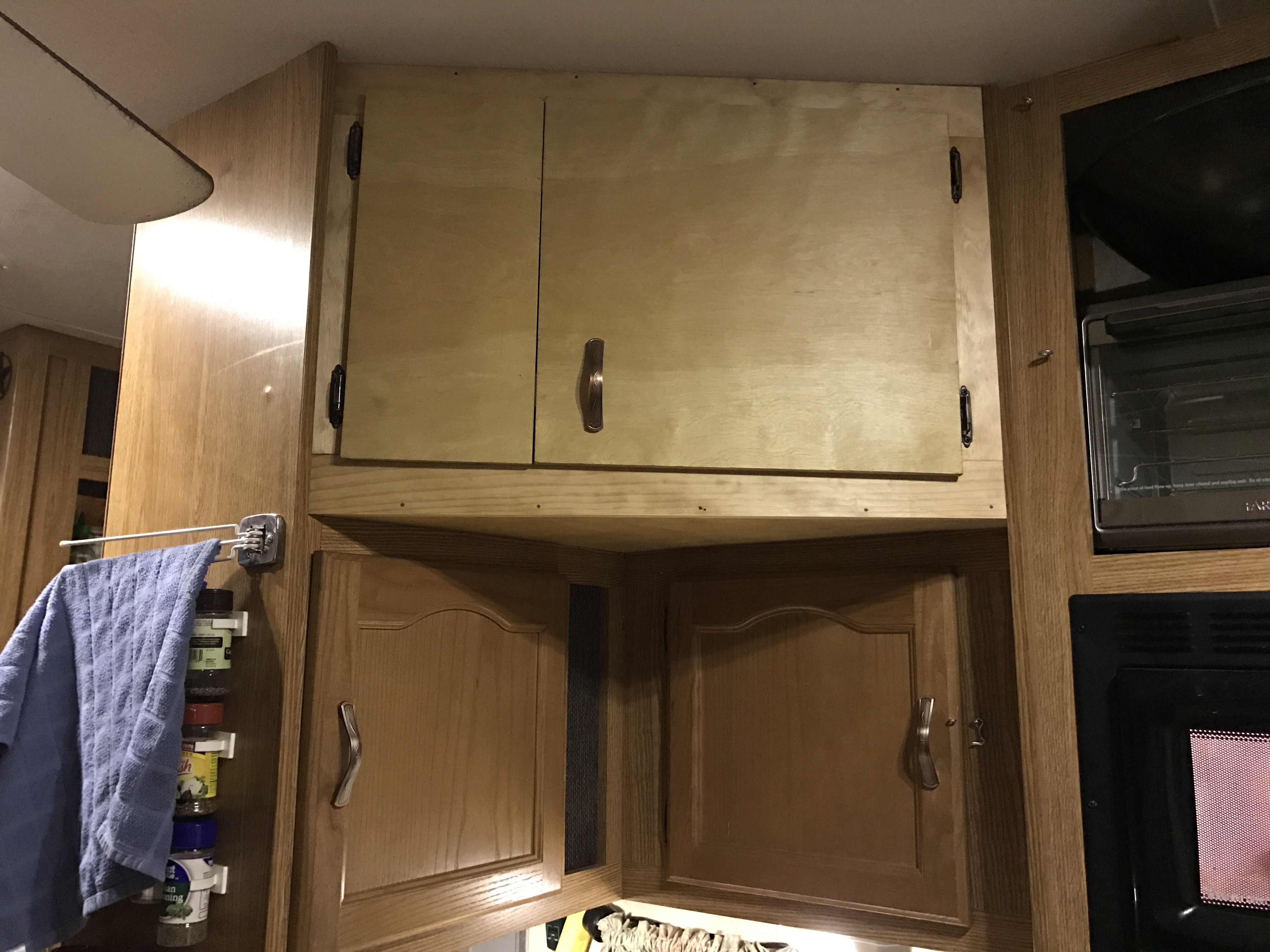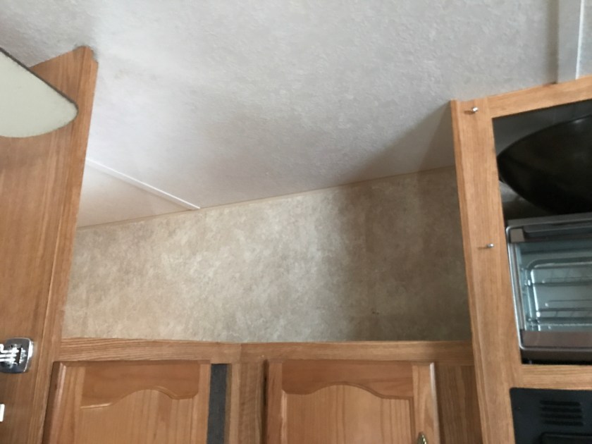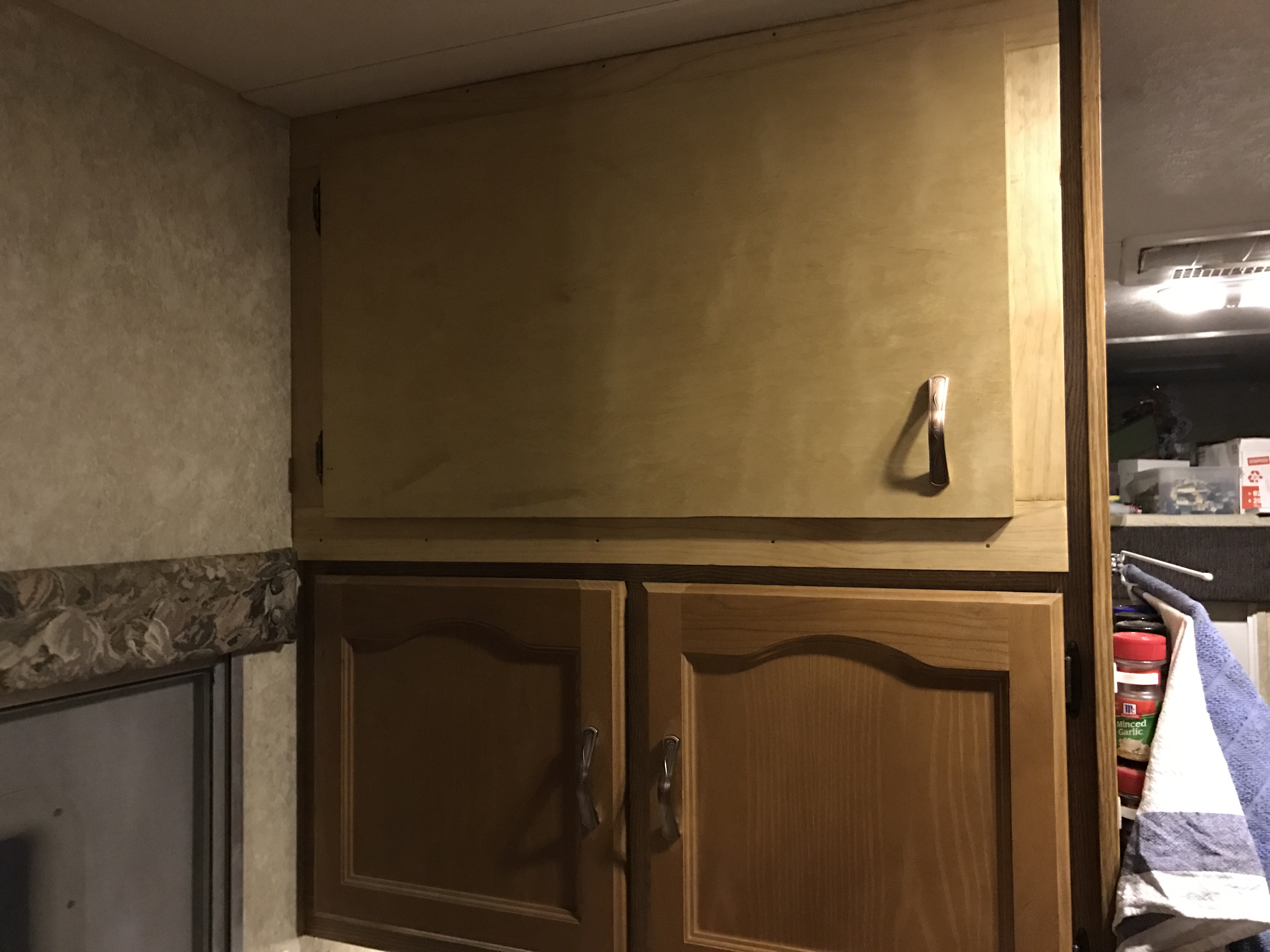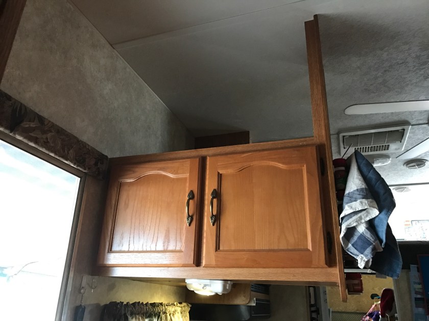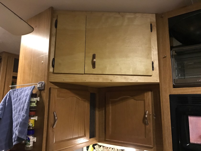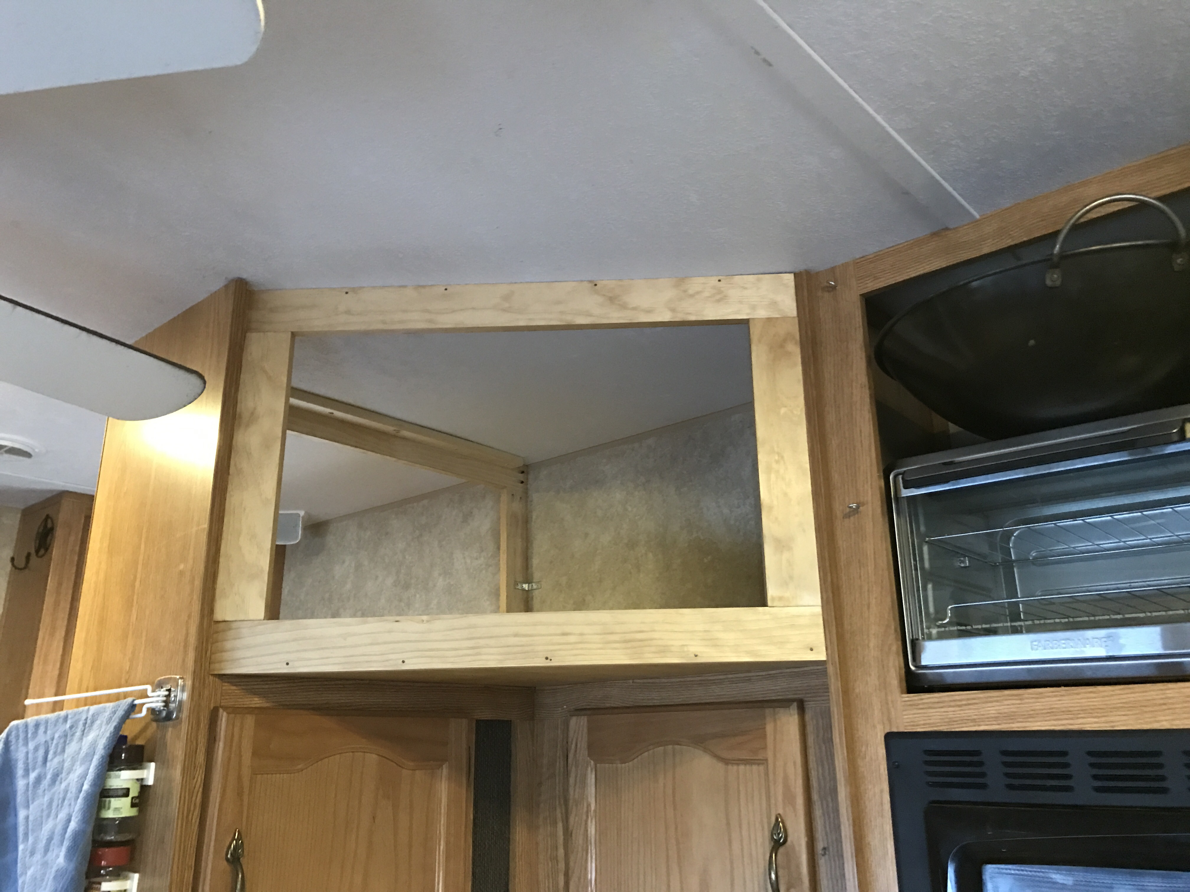 Above our upper set of cabinets in our RV we have a lot of open space before the ceiling. We have used this space to store kitchen bowls and corningware, but between dust and airborne grease particles we seem to need to rewash clean dishes stored up there before using them. The space is also a bit narrow for some things to really be stored there, and some items must be moved prior to taking the RV out on the road.