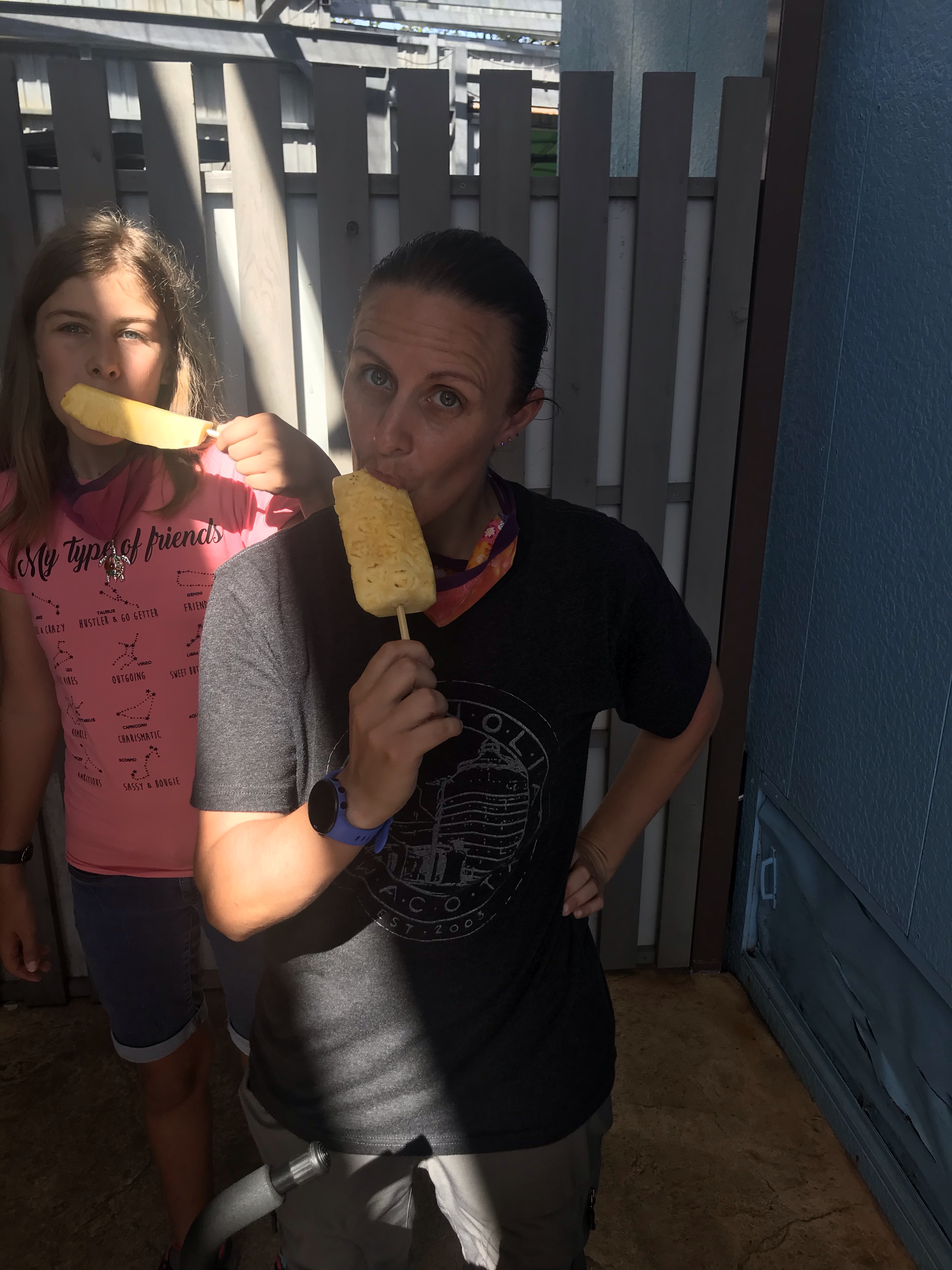 After lunch we traveled a mile or so up the road to Kouri tower. After purchasing tickets at a pretty reasonable fee we boarded an automated golf cart. Yes, you read that correctly. The golf carts drove themselves. It drove us up the side of the large hill zigzagging along plant-lined paths. There was an English audio narration that talked about the island, the view, and the heritage of the island. At the top we disembarked and entered the actual tower. The first area we came to was a seashell museum. Pie absolutely loved this! There were so many beautiful shells and color variations and they were creatively displayed. Most were inside glass cases, but some were not, so we had to make sure what little hands were touching so we didn’t break anything. The tower, some 4 stories tall, was perched atop the tallest hill on the island so it seemed like we were much higher. From the observation deck on the top level one could see all around the island and over the bridge connecting Kouri island to Okinawa. Once we had our fill of the scenery we walked through their shop that had local wares and pumpkin cookies that are made on site. Each person got one free cookie as we entered the store, and their free samples paid off because we liked them well enough to buy a box of 20 to take home with us. There was also a decent amount of merchandise from nearby Nago Pineapple Park including locally produced and bottled pineapple wine.
