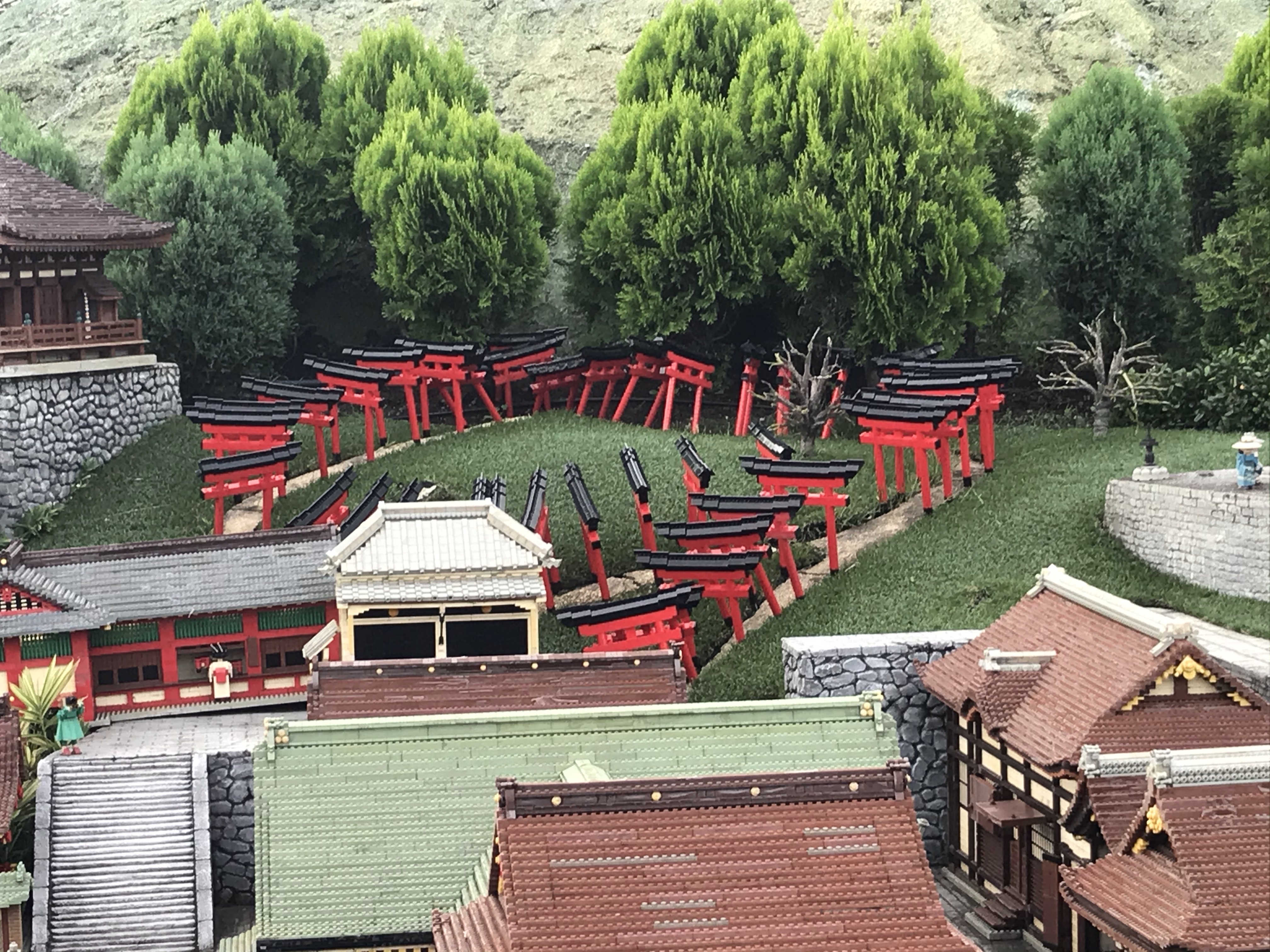 Once inside the gates of the park (with lighter backpacks) we were pleased to find very little in the way of lines or crowds. The park was separated into “lands” that corresponded to different product lines of Legos such as Duplo, Ninjago, City, Knights Kingdom, Pirate Shores, Mini, and Adventure. Each area had themed rides and attractions. The mini section featured some very impressive mini Lego models of real structures from around Japan including the Thousand Torii gates, multiple castles, the Osaka train station, and the Tokyo skyline to name a few.