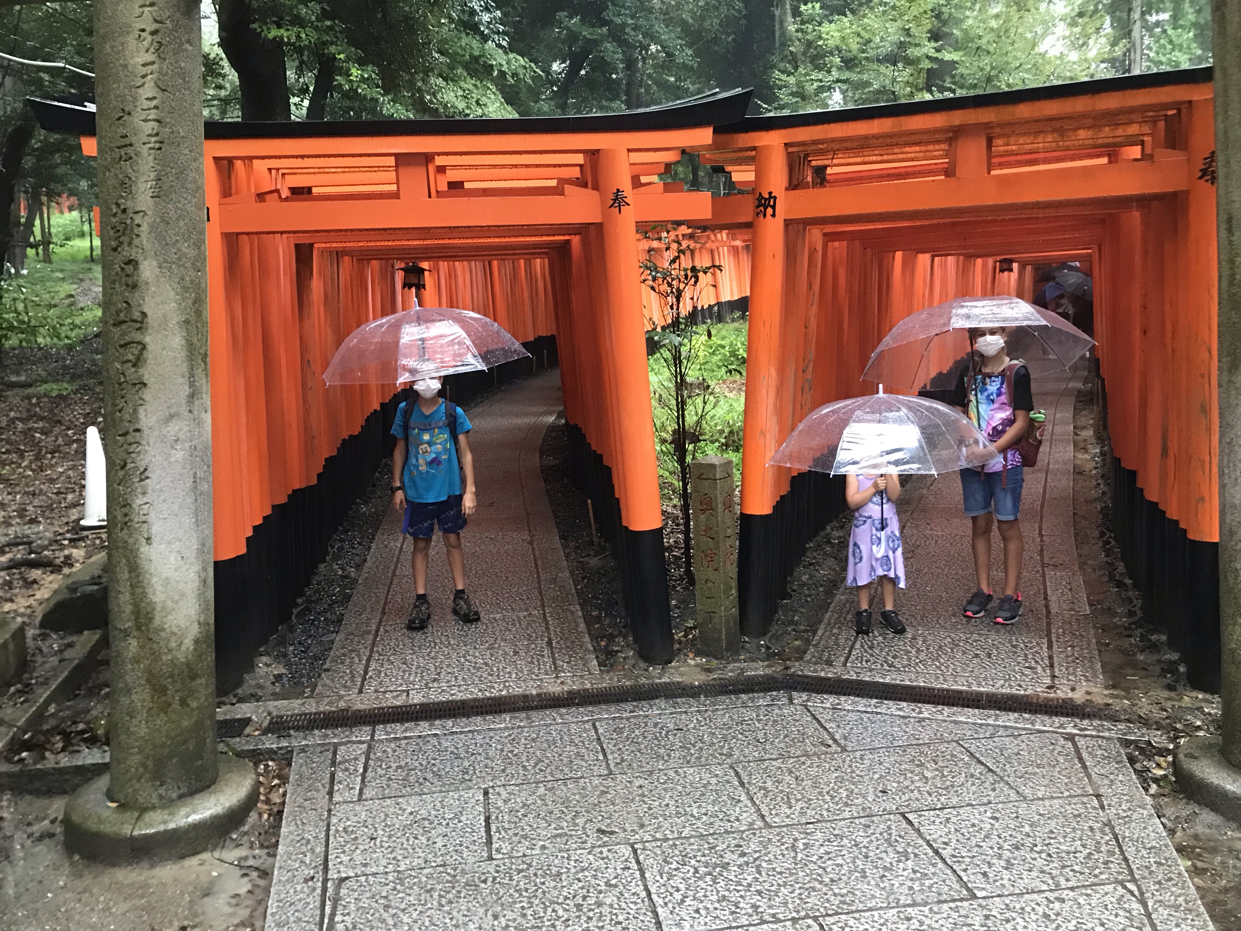 The second place of interest for us in Kyoto was the Thousand Torii Gate site at Fushimi Inari Shrine. This Shinto shrine is among the top tourist spots in mainland Japan. There is one mammoth torii gate in front of the shrine, but on the hill behind the shrine is a walkway with 10,000 torii gates positioned over the path. Along portions of the path the gates were positioned so closely together one could only slide their hand between them. It was quite a site to see, however the pouring rain during our visit lessened the time we spent there before returning to the cover of the nearest train station.