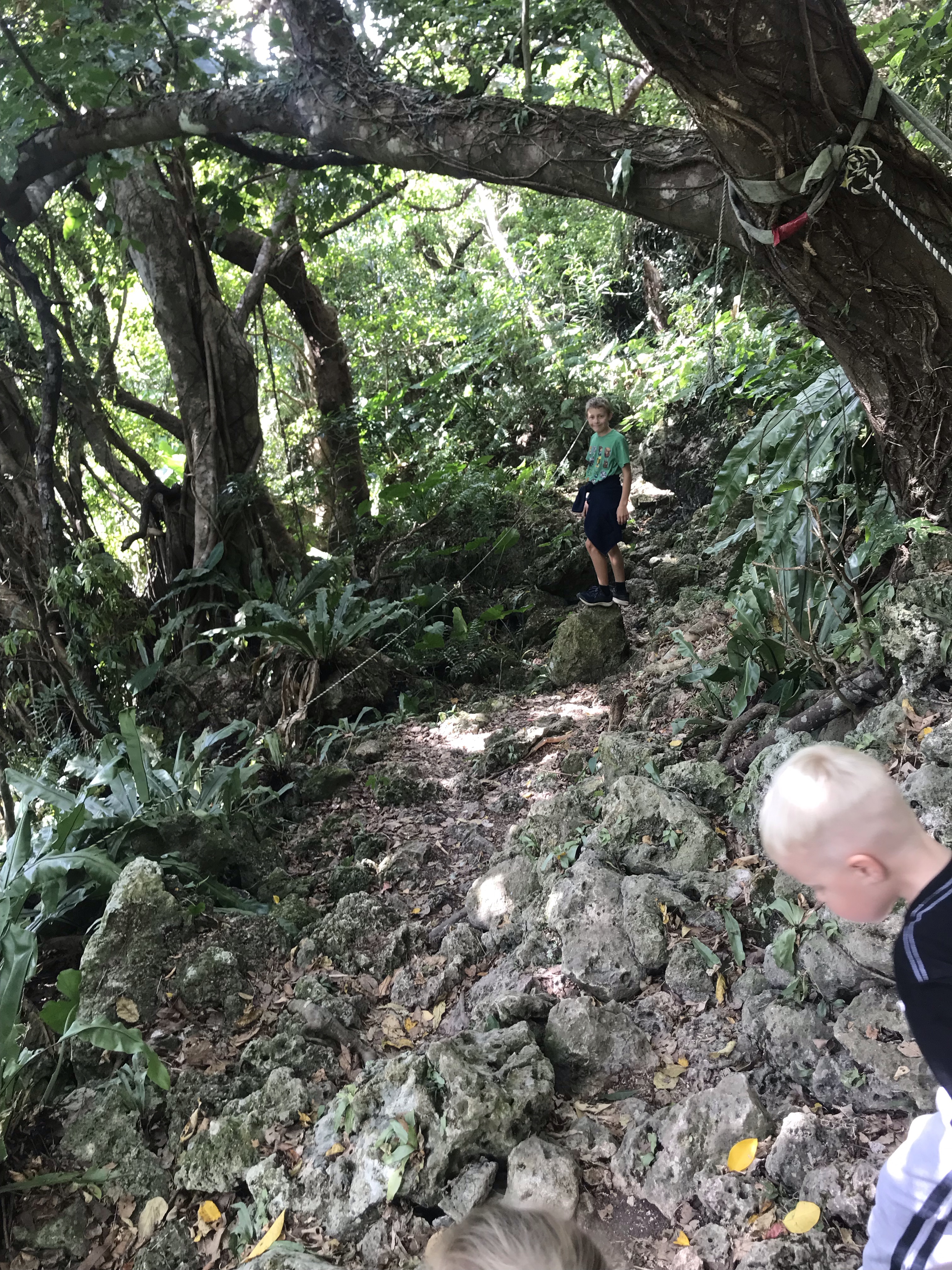 Our first stop was at the Indy Jones Adventure trail, a 1-mile nature trail full of ups and downs through the jungle and rocks of southern Okinawa. There were at least two places we used thick ropes to help climb the jagged rock along the trail. We knew the length going in, but were pleasantly surprised at the amount of climbing we had to do. It was anything but a wide handicapped-accessible path through some greenery. It took us about an hour to navigate the loop trail and check out the Tamagusuku castle ruins that spur off to the south from the Adventure trail. The views were gorgeous as we overlooked the ocean and town below. The foliage was thick and intertwined, but still allowed ample sunlight through. If the description hasn’t won you over already, I would definitely recommend you grab a pair of hiking shoes and try out this trail. It will not disappoint as a family outing.