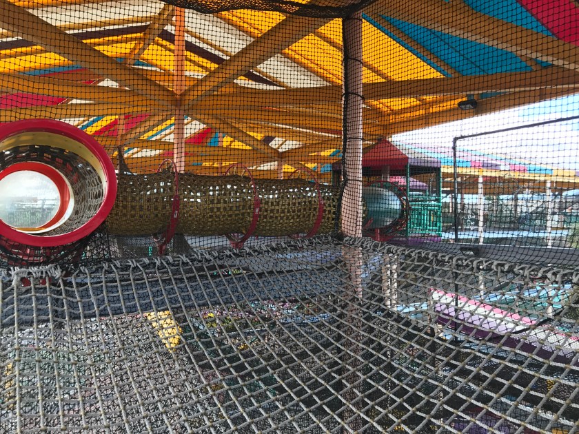We also enjoyed climbing through a huge playhouse of nets and webbing tunnels. The whole thing was about 40 feet high and a few hundred feet long. I think the adults had as much fun climbing through the nets as the kids did. It was also a good way to run off some excess energy between shows.