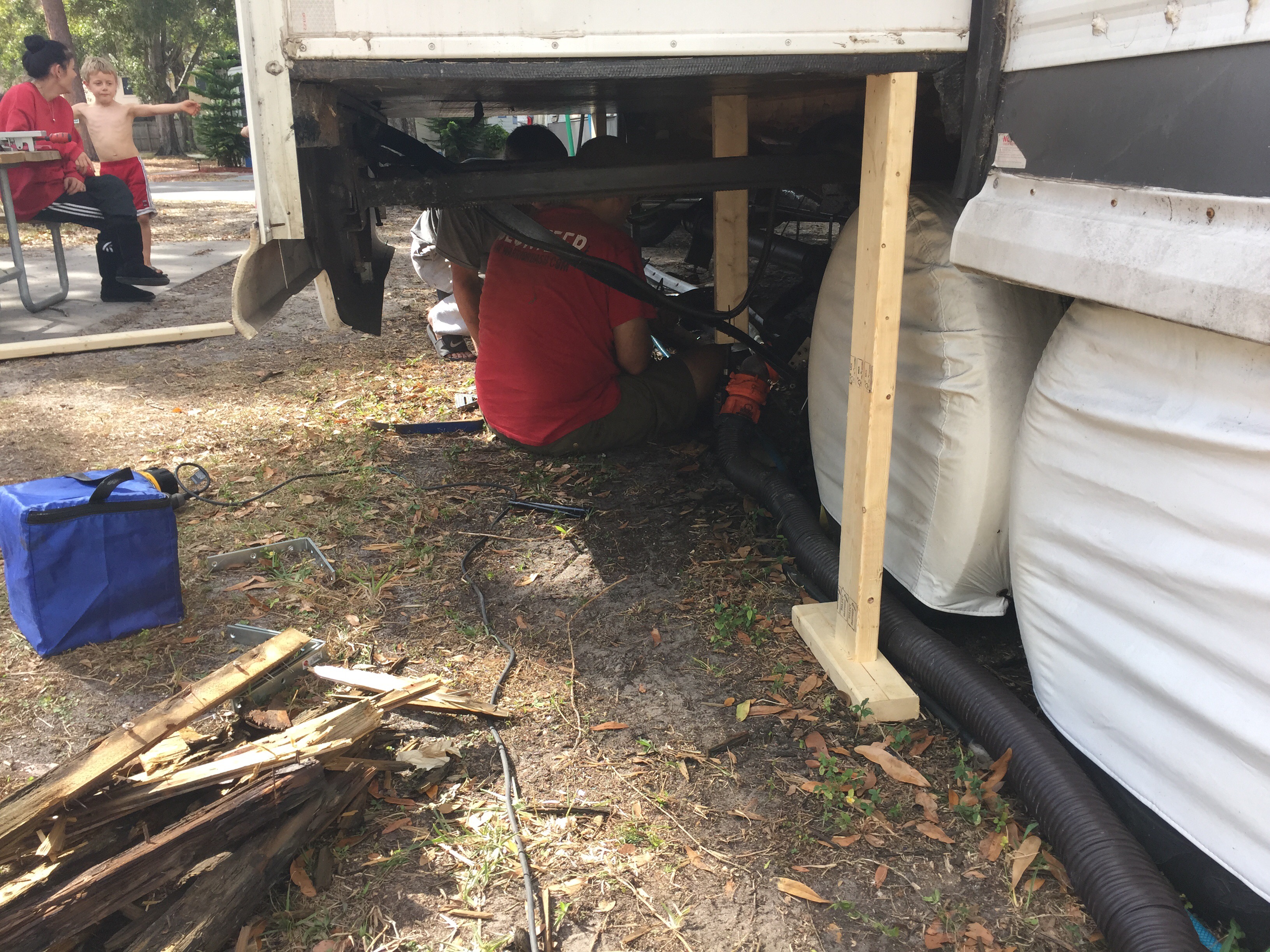 Heather’s mom [Karla] and sister [Hailey] (and Hailey’s little one) arrived from Ohio via car (later in the week Heather’s other sister [Holly] arrived by plane for a shorter visit) with lots of Christmas presents for the kids onboard. We celebrated Christmas (round three) outside on the picnic table where we could all spread out and show off our new gifts. Luckily for us our extended family has become more attuned to our living situation and the gifts were not quite as physically large as in past years. (This in contrast to the much loved powerwheels vehicles our kids recieved two Christmases ago that we struggled to find a place to transport every time we moved until the kids outgrew them and we gave them back to grandma to store for the next grandchild.) We are very thankful for our Christmas gifts. 🙂 It was an enjoyable morning!